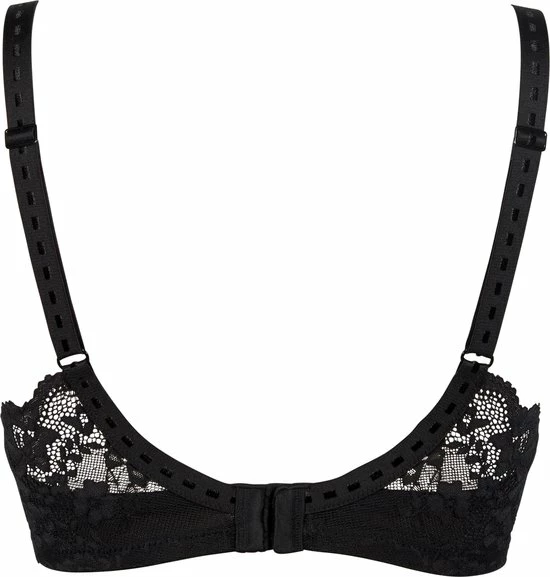 Kanten voorgevormde beugelbeha, vervaardigd uit gerecycelde materialen. Full cover cup, duurzaam, vrouwelijk zijn de belangrijkste kenmerken. Een hogere achterzijde in kant voor een smooth silhouette. Verstelbare schouderbandjes en een achtersluiting met 4 verstelmogelijkheden. #Naturefriendly