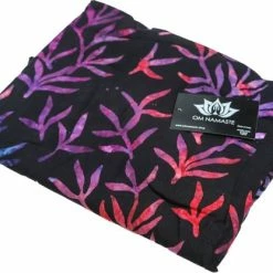 Om Namaste Sarong Pareo Saunadoek Wikkeljurk – 99 – Paarse Bladeren Op Zwart