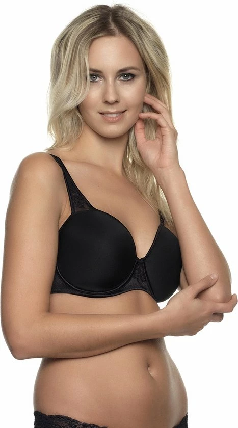 Full cover beugelbeha in spacer materiaal. Een ademende stof voor een optimaal draagcomfort. Aan de voorzijde tussen de cups en op de wat bredere zijpanden is een elegante embroidery applicatie te zien. Zijpanden in een glanzende satijn voor extra ondersteuning. Achtersluiting en verstelbare schouderbandjes.