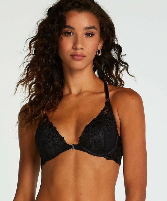 Deze bh geeft je een luxe gevoel. De cups zijn voorgevormd en de bh heeft een voorsluiting. De cups zijn volledig bedekt met kant en de achterkant van de bh is afgewerkt met een strap detail. Match met bijpassende items voor de complete look!