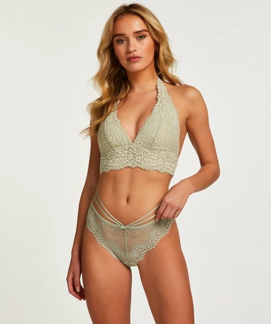 Voel je comfortabel en sexy in deze halter bralette! De bralette bestaat bijna volledig uit kant en zit lekker doordat hij wireless is. De bralette heeft uitneembare padding. Combineer met de bijpassende slip voor een compleet set!