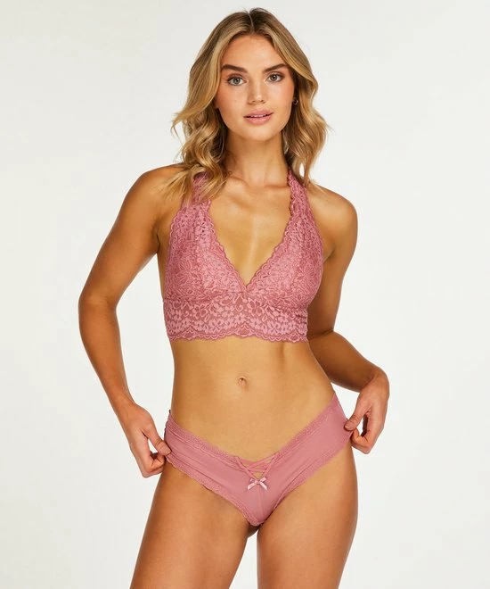 Voel je comfortabel en sexy in deze halter bralette! De bralette bestaat bijna volledig uit kant en zit lekker doordat hij wireless is. De bralette heeft uitneembare padding. Combineer met de bijpassende slip voor een compleet set!