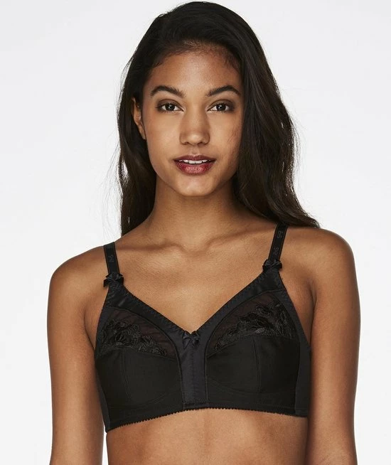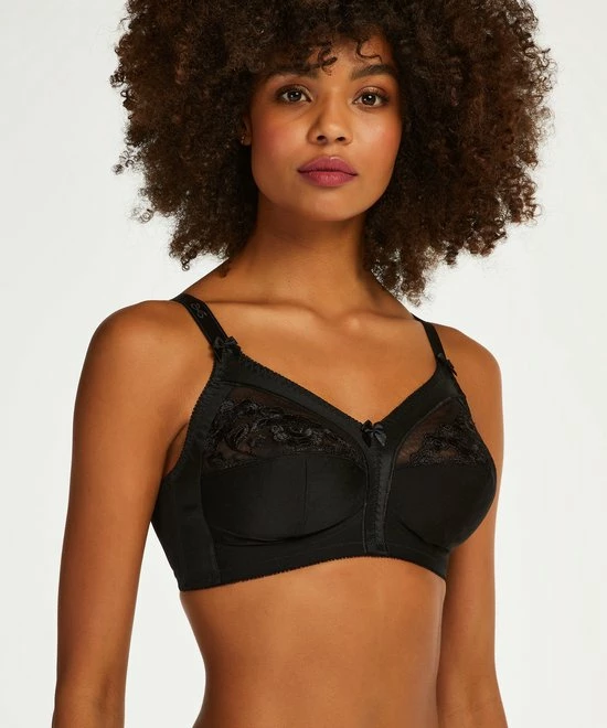 Niet-voorgevormde bh zonder beugel. De schouderbandjes zijn versierd met een bloemen borduursel. De brede schouderbandjes zorgen voor extra draagcomfort.