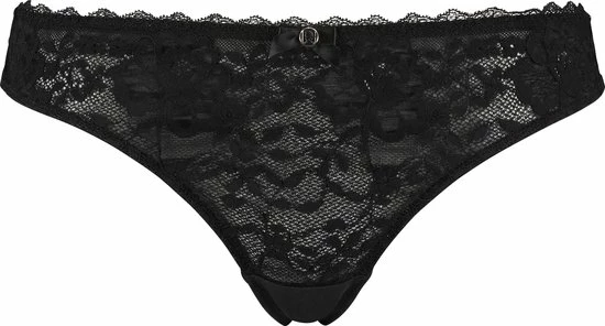 Deze string is uitgevoerd in semi-transparant kant in een bloemenmotief. Aan de voorzijde is de string afgewerkt met een sierlijk strikje. Combineer de slip met de bijpassende bh en maak je set compleet!