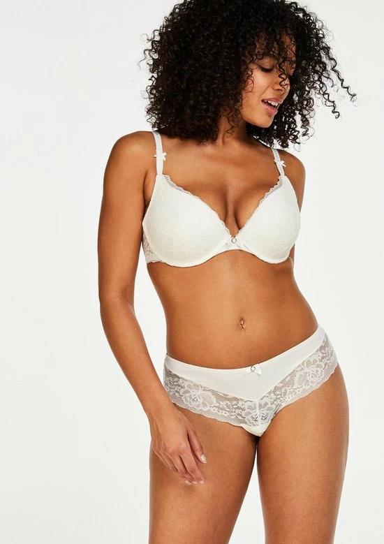 Deze voorgevormde beugel bh is mooi afgewerkt met kant in een bloemenmotief. Het push-up effect zorgt voor een optisch grotere cupmaat. Combineer met een bijpassende slip voor een complete look!