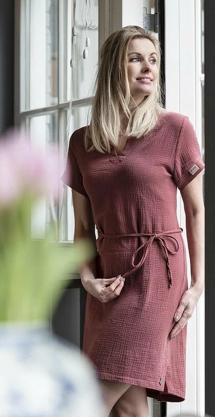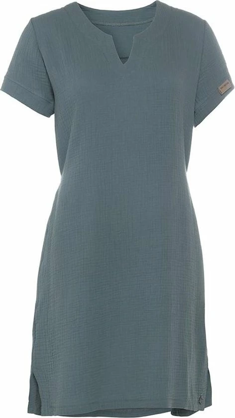 De casual jurk Indy in stone green, maat L is een absolute favoriet voor de zomer! Deze katoenen jurk heeft een subtiele tuniek halslijn en korte mouwen. De mousseline jurk is gemaakt van 100% biologisch katoen en geeft deze zomerjurk een luchtig en comfortabel gevoel. Daarnaast heeft deze groenblauwe vrijetijdsjurk twee onopvallende kleine lusjes aan de zijkant op heuphoogte, waar je het bijbehorende losse riempje doorheen kunt trekken. Dit koord accentueert de taille en kan zowel voor als achter in een strik gestrikt worden. Door de losse pasvorm kan deze jurk ook als tuniek over een broek gedragen worden. Naast de kleur stone green, maat L is de Indy jurk ook verkrijgbaar in andere maten en andere leuke kleuren.