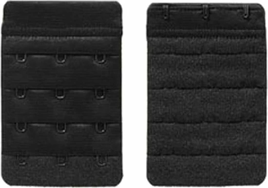 Heel handig als je Beha te strak zit door bijvoorbeeld gewichtstoename of door een zwangerschap. De Beha verlenger maakt je Beha weer passend. Zodra je weer op je oude gewicht bent past je Beha gewoon weer. De verlengers zijn te verkrijgen in verschillende maten, aantal haakjes en verschillende kleuren. Hoogte 5 cm Breedte 7,5 cm Afstand tussen de haken 1,8 cm Beha verlenger 3 haaks Zwart ( 2 pack) voor een betere pasvorm