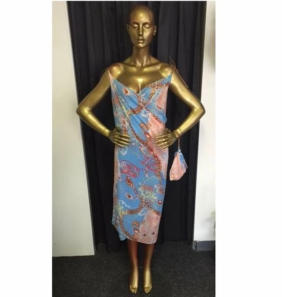 Dit zomerse wrapjurkje kun je op diverse manieren dragen en wordt verpakt in een leuk bijpassend zakje.