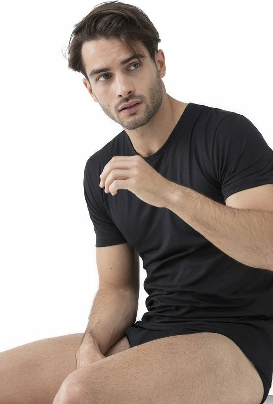 Model en halsMet dit zwarte Mey T-shirt uit de ‘Dry Cotton’ collectie haal je een fijne basic in huis. Het ‘Crew-Neck’ shirt heeft een O-hals en is daardoor goed te dragen onder een overhemd of trui.Kwalitatieve eigenschappenDe vochtregulerende Coolmax-vezels houden jouw huid op de perfecte temperatuur.Laat je huid ademen: de innoverende mix van natuurlijke- en microvezels maakt deze stof verbazingwekkend ademend.Optimaal comfort dankzij het droog katoen. Deze is niet alleen ademend, maar ook bijzonder sneldrogend.Pasvorm en materiaalHet herenshirt heeft een getailleerde Slim-Fit pasvorm waardoor deze slank langs het lichaam valt en je zo voorziet van een aangenaam draagcomfort. Daarnaast is het T-shirt gemaakt van 57% katoen, 38% polyester en 5% elastaan (stretch). Dankzij deze materiaalcombinatie is de stof enorm sneldrogend, erg ademend en luchtdoorlatend. Mey ‘Dry Cotton’ T-shirtZwart gekleurdMet O-halsGetailleerde Slim-Fit pasvormGemaakt van 57% katoen, 38% polyester en 5% elastaan (stretch)