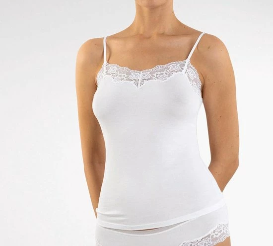 95% Modal 5% Elastaan, mooie kwaliteit dames hemdje met kant en spaghettibandjes.