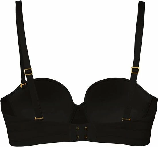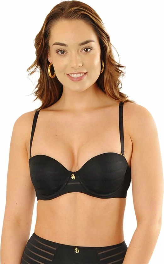 De strapless balconette bh is een bijzonder item. Deze zwart gestreepte bh kun je met en zonder bandjes dragen. Er zit geen rubber of silicone in deze bh om irritatie van de huid te vermijden. De beugel van de bh is aangepast zodat de bh bij zo veel mogelijk vrouwen mooi en comfortabel zit.